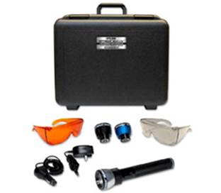 多波段警用檢查光源配有結(jié)實(shí)的黑色陽(yáng)化鋁手電殼體、七個(gè)可快速更換的LED燈頭(UV-A(長(zhǎng)波紫外)、藍(lán)光、藍(lán)綠光、綠光、琥珀光及白光)、三個(gè)插入式濾色板(黃色、橙色及紅色)、交流及直流充電器、四個(gè)眼鏡(紫外防護(hù)、橙色、黃色及紅色眼鏡)及一個(gè)手提箱。