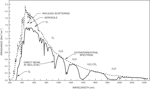 ● 不同類型光源的光譜輻射度曲線 ![]() ![]() ◆ 輸出總功率 ![]() 據(jù)相關(guān)標(biāo)準(zhǔn)規(guī)定,約1000W/m2(@AM