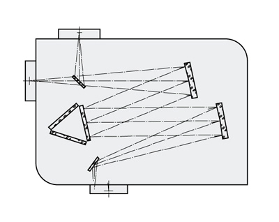 雙出口光譜儀,垂直出口安裝CCD,平行出口安裝狹縫,電動(dòng)切換 |