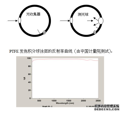 PTFE發(fā)泡積分球是一種新產品,它不同于用PTFE涂料噴涂的積分球,它是PTFE 粉料經改性、發(fā)泡,再機加工成球殼形,后經拋光、清洗而成。其大優(yōu)點是涂層壁厚,永不脫落。本品的光學性能很好,反射高,光譜中性,穩(wěn)定性好。不透光,效率高;涂層強度高,整體性好,不怕潮濕,甚至可以用于水底測量,還可以用于更惡劣的環(huán)境中,如酸、堿、鹽水溶液中光測量。球體加工精度高,外形多變,可以適應各種儀器光路設計,在光學儀器中廣泛應用。