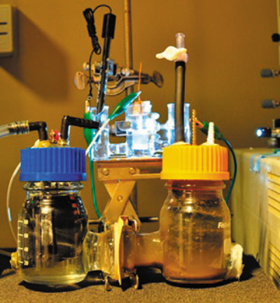 該團(tuán)隊(duì)將太陽能電池與微生物燃料電池巧妙地整合在一起,利用太陽能和廢水中的有機(jī)養(yǎng)分生產(chǎn)清潔能源—氫氣。這一新型裝置首先將太陽能轉(zhuǎn)化為電能,然后將電子傳遞給廢水中的微生物使其有足夠的能量分解廢水中的有機(jī)物。其中的一些細(xì)菌在消耗有機(jī)物的同時(shí)產(chǎn)生電子,這些電子通過導(dǎo)線被傳回太陽能用以分解水—生成氫氣和氧氣。實(shí)驗(yàn)證明,廢水中2/3的有機(jī)廢物在兩天之內(nèi)就會(huì)被分解掉。盡管凈化之后的廢水還不能直接飲用,但是如果將這一成果應(yīng)用于廢水處理廠將使得生活廢水處理過程大幅簡(jiǎn)化,更重要的是與此同時(shí)大量生產(chǎn)氫氣這一清潔能源。